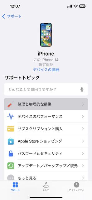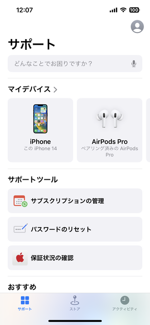①入手した[Apple サポート]Appを起動する