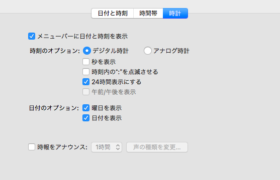 ★メニューバー に日付を表示させる
