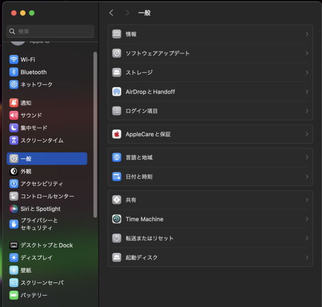 また、このストレージデバイスはTime Machine専用にしてください。 - システム設定>一般>「Time Machine」 をクリックします。