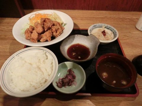 から揚げ定食を注文! ではさっそく、パクッ!