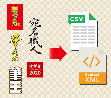 ただし、市販ソフト(” 筆まめ ”” 筆王 ”など)の宛名データは、弊社のデータへの変換が必要です。詳しくは、” 住所録データ変換 ”のページでご確認ください