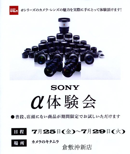 Sony α体験会 7月25日~29日で開催いたします 沖新店