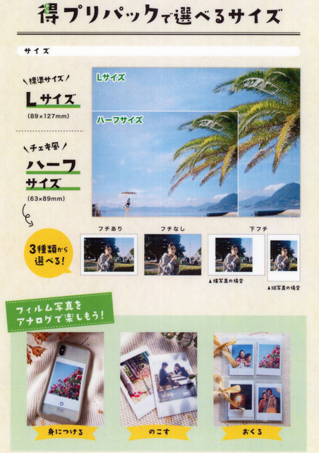 写真プリントが各1枚つきます