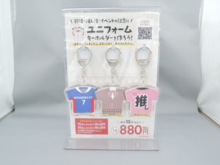 ユニフォームキーホルダー(写真も入れられる)の見本が店頭に登場