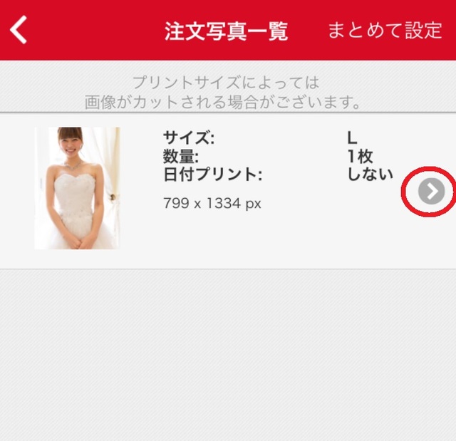 スマホアプリは写真を選んだ後のこの画面で、右矢印を押すと調整できます