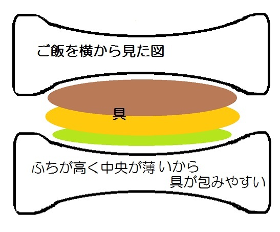 しゃもじでご飯を四角く置くってことが