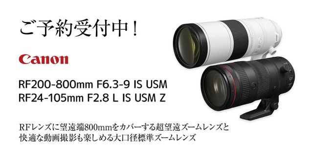 キャノン新製品RF24-105/RF200-600予約受付中萩原