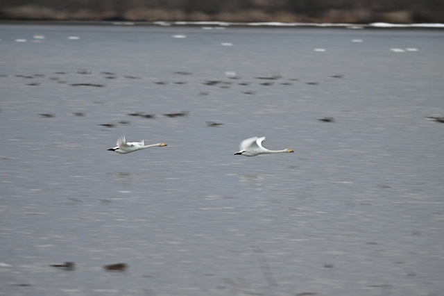 飛翔する白鳥を流し撮り