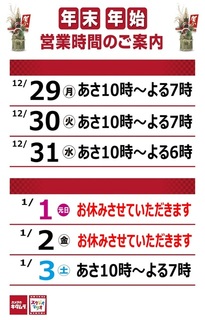 年末年始営業時間のお知らせ【米原店】