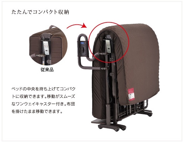 また、収納式だからお布団を掛けたままでもコンパクトに折りたためます。