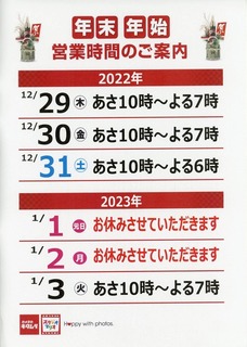 年末年始の営業時間のご案内 河内長野店