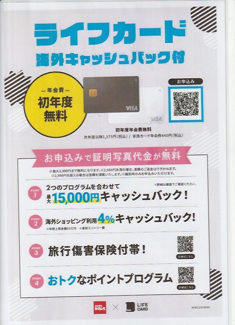 今なら店頭でライフカードを申し込み頂くと