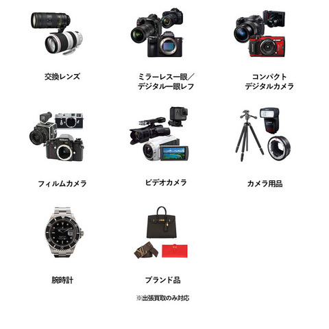 カメラ、腕時計、ブランドバッグなど