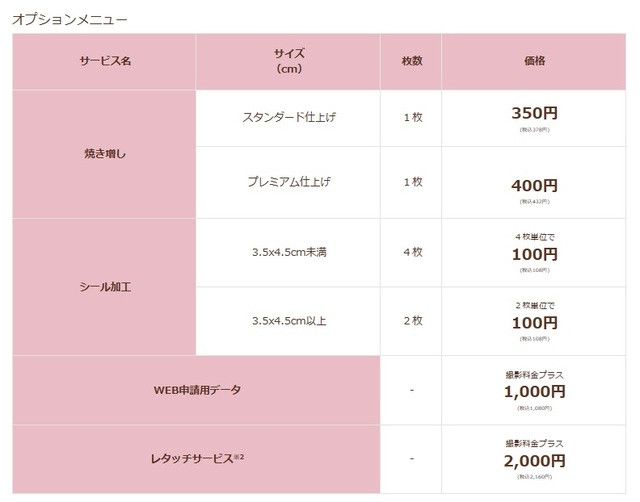 プレミアム仕上げなどのオプションメニューも低価格でご用意しております