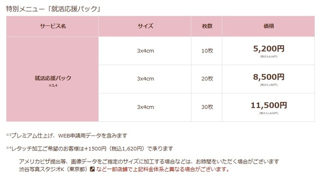 キタムラの証明写真1,600円(税抜・スタンダードプランの場合/焼増し用控えチケット付き)から承ります