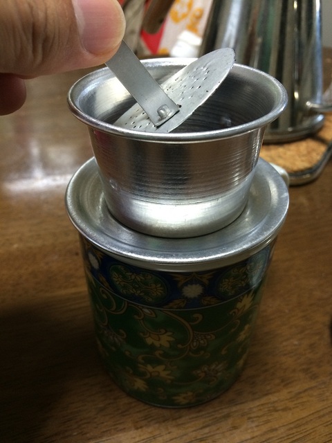 ベトナム名物アルミフィルターを使って、コーヒーを入れます。