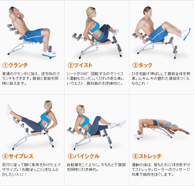 また、目的に合わせて腹筋運動を6種類選ぶことができます