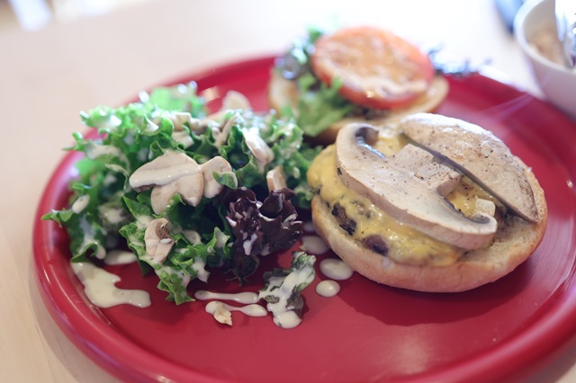 おいしいマッシュルームハンバーガー。