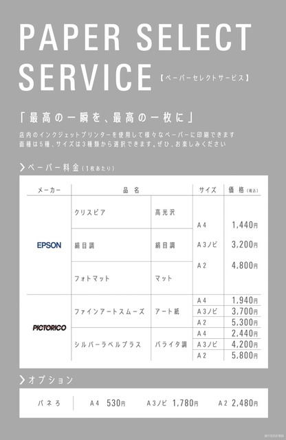 店内のインクジェットプリンターを使用して様々なペーパーに印刷できます。