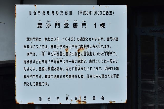 江戸時代には仙台藩内に相撲興行場が5か所指定されたが、毘沙門堂はそのうちの1つであった。藩内で最も多くの相撲興行が行われた当堂は、仙台相撲興行の中心地となった。その関係もあって、大相撲第9代横綱である秀ノ山雷五郎の供養碑や、立行司の六代目式守伊之助(二代式守鬼一郎)の墓もある。