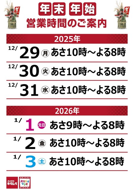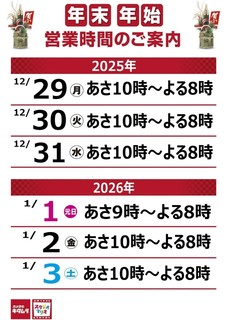 年末年始の営業時間のお知らせ イオンモール高松店