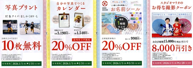 とてもお得なクーポン券なのでこの機会にぜひ写真やカレンダーなどに