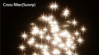 小物の撮影やお花の撮影で効果を発揮します。2、クロススクリーン⇒光を8本の線の美しい煌きで表現します。