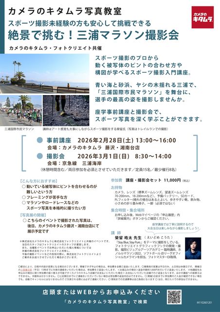 - 「三浦の絶景で挑むマラソン撮影体験!」カメラのキタムラ湘南台店